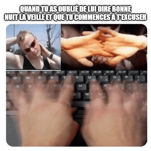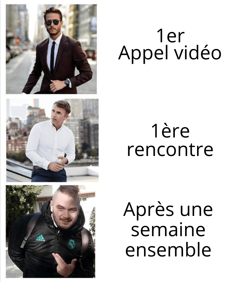 Et ma copine aussi. On rigole beaucoup des clichés qu’on associe aux couples en relation à distance. On a donc commencé à créer et s’envoyer des memes, depuis le début de notre relation.