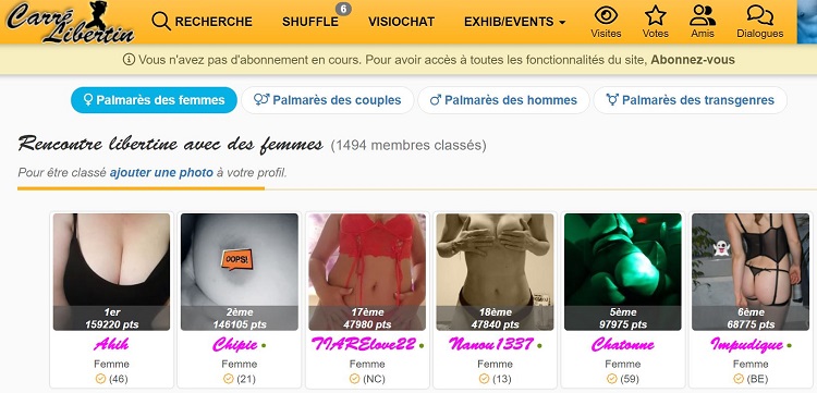 Une des caractéristiques de ce site de rencontres libertines, c’est la présence d’un système de votes à l’égard des autres utilisateurs ou utilisatrices. Cette fonctionnalité permet aux membres de voter et de promouvoir d’une certaine façon l’activité des autres.
